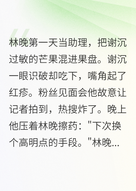 [11-18 15:31] 闵彦辰沈嘉乔婷完结篇(不见白首见浮生)(闵彦辰沈嘉乔婷)高分_全文阅读 著名作家“大雨吃小雨”精心打造的精品短篇小说《闵彦辰沈嘉乔婷完结篇(又名:不见白首见浮生)》,描写了角色 分别是【闵彦辰沈嘉乔婷】,情节精彩纷呈,本站纯净无弹窗,欢迎品读!本书共25381字,21章节,更新日期为2025-11-18。该作品目前在本网 【tjlcw.com】上完结。小说详情介绍:我七周年纪念日的礼物是来自派出所的一通电话。“沈小姐吗?你的丈夫闵彦辰因与他人发生纠纷,目前正在我们派出所接受调查处理,麻烦你现在过来一趟。”“我老公一直在我身边呢......”话还没说完,我却发现睡前还和我温存的丈夫不见了。我赶到时,便看见闵彦辰英俊的脸上挂了彩,低头坐着,面色阴沉。一位长相清冷倔强的女孩坐在他身边。“我不认识他,我正在酒吧里打工,有人骚扰我,这个男人就冲过来把人打了一顿。”“现在人还在医院躺着呢,要赔钱也去找他。”闵彦辰笑了,牙齿顶了顶腮,“行,我赔,乔婷你先走吧。”