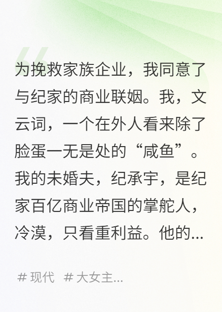 [11-18 22:12] 全篇小说岁岁念念占春风:姜知虞封景尘苏云薇(姜知虞封景尘苏云薇)阅读纯净阅读终极反转 故事主线围绕【姜知虞封景尘苏云薇】展开的精品短篇小说《岁岁念念占春风:姜知虞封景尘苏云薇》,由知名作家“糯米糖葫芦”执笔,情节跌宕起伏,本站无弹窗,欢迎阅读!本书共计22114字,17章节,更新日期为2025-11-15。该作品目前在本网 【tjlcw.com】上完结。小说详情介绍:和封景尘订婚的第四年,姜知虞依旧没能和他结婚。只因封家祖训,继承人求得上上签才能举行婚礼。然而每一年,封景尘求得的都是下下签。姜知虞本以为他们只是差了点运气。直到第四年,她亲眼目睹封景尘将上上签换成下下签。她这才知道,原来他从未想过娶她。