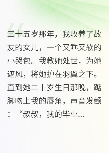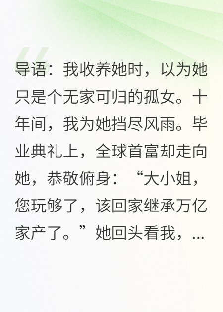 [11-18 13:46] 江则深沈如星(写给遗忘的情书)(江则深沈如星林初晚)序章+小说全集阅读最新作品预订 小说《江则深沈如星(又名:写给遗忘的情书)》的主角是【江则深沈如星林初晚】,这是一本精品短篇小说,由才华横溢的“安素”创作,故事情节生动有趣。本站无广告,欢迎阅读!本书共计26762字,22章节,更新日期为2025-11-18。该作品目前在本网 【tjlcw.com】上完结。小说详情介绍:婚后的第五年,一向不注重仪式感的丈夫江则深突然提出补拍婚纱照。摄影棚内一切准备就绪,沈如星穿着洁白的婚纱站在灯光下。江则深却频频看表,随后起身出去。再回来时,身旁跟着他迟到的寡嫂林初晚和侄儿景琛。林初晚一袭白裙,温婉依旧。江则深极其自然地接过她的手提包,那张平日里冷峻的脸,难得流露出一丝温情。他们三人自然地站到了镜头中央,景琛紧紧依偎着他们。作为江则深妻子的沈如星被挤到了最旁边。她没有说话,只是静静看着,直到画面定格。结束后,她无声地卸了妆,独自回家。手机震动,是江则深的短信:【你怎么自己走了?】