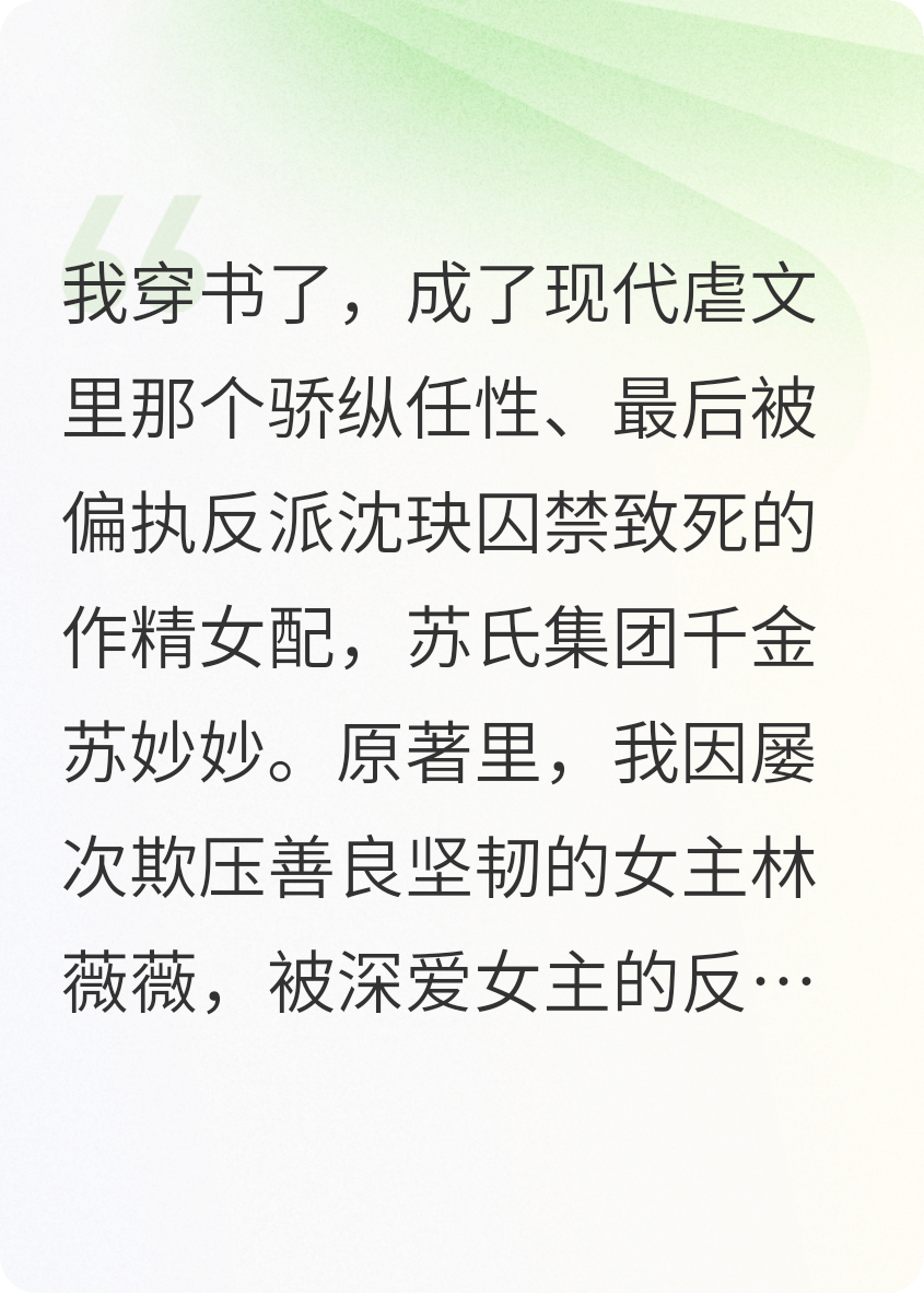[06-17 17:14] 宋玥玥胡萝卜黎初的故事在什么小说中? 嫂子是个传统的家长。侄女对胡萝卜、鸡蛋严重过敏,但她偏要让侄女吃。还说:“多吃几次,习惯了就好,现在的孩子就是太娇气了!”我作为大学生,建议她不要让侄女吃过敏的食物,严重的会导致死亡。后来,侄女健康长大。每次遇到同学矛盾,嫂子就会告诉她:“原本要是你从小就吃,现在早就不过敏了,都是你姑姑和奶奶出的馊主意,让你现在因为挑食被同学孤立。”她因此怀恨在心,在成为大明星后,引导粉丝对我网暴。最后我被她的毒唯从高楼推下,含冤致死。再睁眼,我回到了春节回家问建议那天。这次,我淡淡说:“你是孩子妈妈,你总归是不会害她的,你看着办吧。”