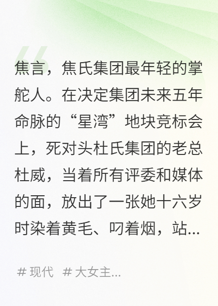 皮小痞-著 查看姜黎作为真千金归国接手濒临危机的家族企业,假名媛姐姐和白莲花妹妹频频挑衅,试图将她逼出局。然而姜黎隐藏多重身份,利用海外资源和资本运作反击。从商业谈判、媒体公关到高端社交圈,她步步为营,将对手逐一击溃。最终,她不仅稳住家族产业,还打造出新的商业帝国,赢得了爱人和社会的尊重,证明了自己才是真正的女王。